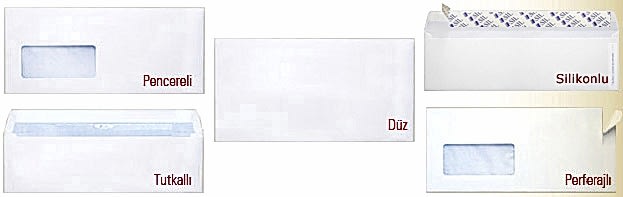 Modeller; Düz, Pencereli, Silikonlu (yapışkanlı) ve silikonsuz.(tutkallı)